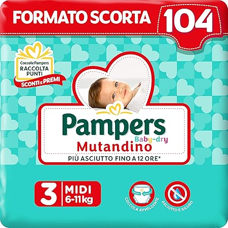 Pampers Baby Dry Mutandino Taglia 3 Pacco Scorta Da 104 Pannolini