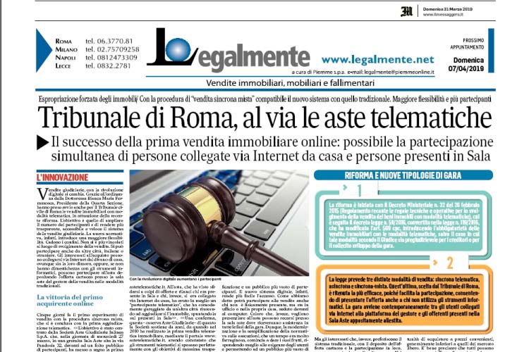 Il Messaggero 1a Aggiudicazione Telematica Per Un Asta Giudiziaria Del Tribunale Di Roma Astegiudiziarie It