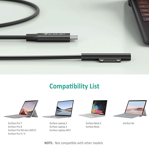 Elecjet Surface Go Charger Cable 5ft Usb C To Surface Pro Connector Pd 15v 3a Cavo Di Ricarica Per Usb C Per Microsoft Surface Pro 7 6 5 4 3 Laptop 3 2 1 Surface Go Book 2 1 1 5m Amazon It Informatica